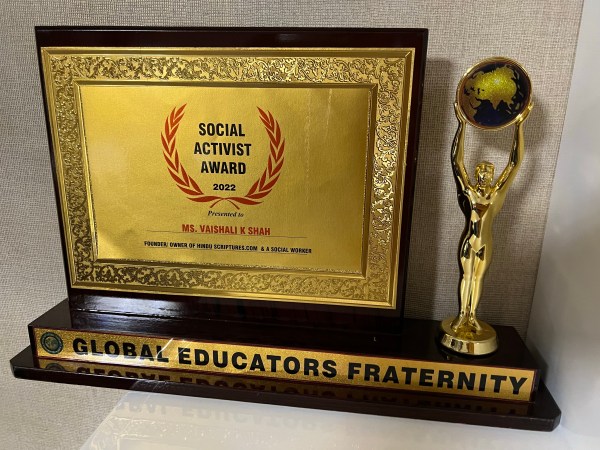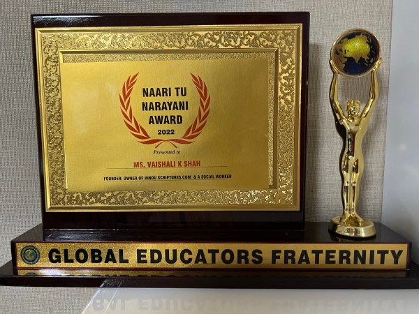 Another one was given for running the website http://www.hinduscriptures.com single-handedly for the last eighteen years.